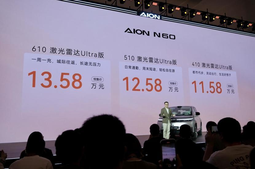 4月16日,埃安AION N60正式开启预售,官方预售价11.58-13.58万元。先说重点,埃安N60基于广汽AEP3.0纯电新平台打造,16项核心配置,全系标配,真正的入门即顶配。续航覆盖410km、510km和610km三个版本,4月28日公布正式售价。