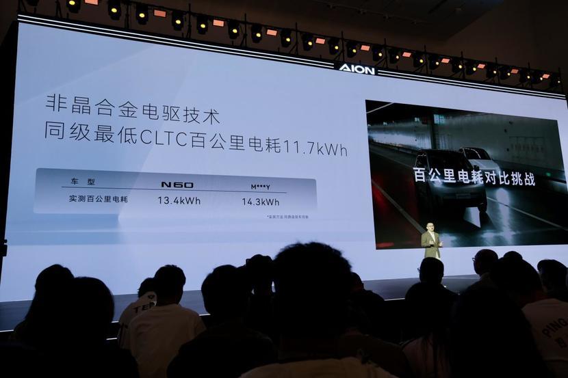 N60在动力上也用上了新技术,非晶合金碳化硅电驱系统首次上车,电机效率高达99%。全系采用前置单电机,最大功率165kW,续航覆盖410-610km,CLTC工况下电耗为11.5kWh/100km,实测也仅需13.4kWh/100km,并标配哨兵模式。